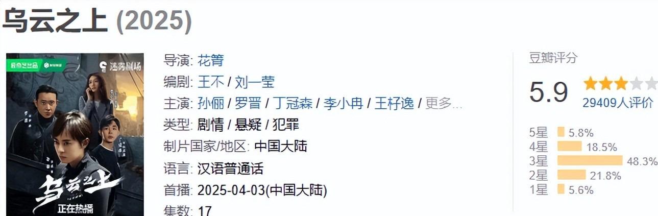 2025年十部热播悬疑剧豆瓣评分,《乌云之上》垫底,《唐诡3》第2