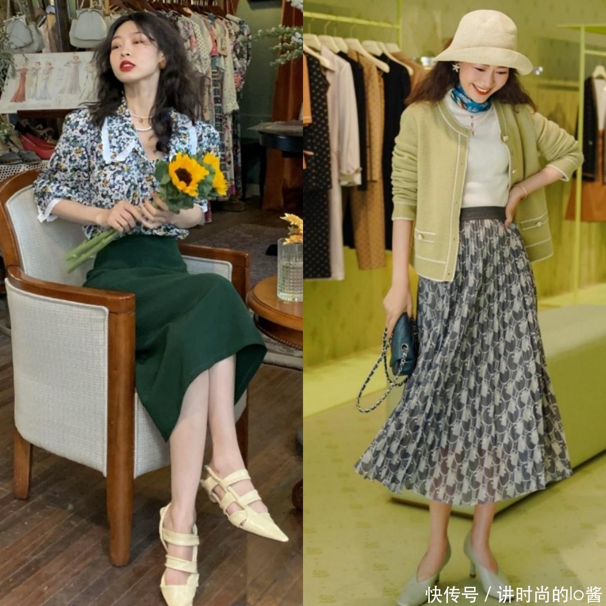 >>用伞裙搭配低跟奶奶鞋, 可温柔可优雅