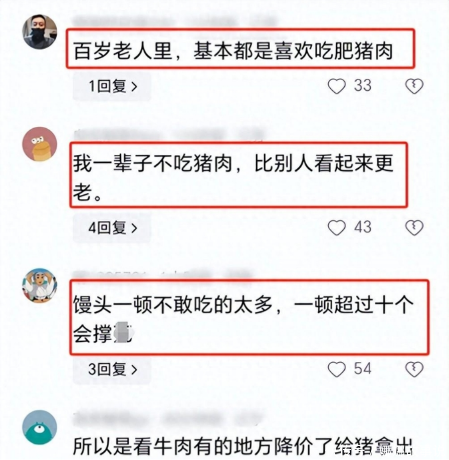 网友们的评论五花八门,有的以幽默的方式表达了对这一研究的看法。比如,有人提到他们那里的长寿老人都喜欢吃红烧肉,似乎在说长寿与食用猪肉并无直接关系。还有网友调侃说,自己虽然不吃肉,但看起来并没有比吃肉的人年轻。更有人戏谑地提出,吃馒头也不能过量,一顿不超过十个。
