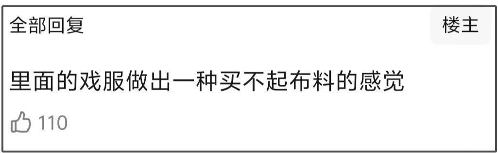——衣服毫无放量,裙子长度不上不下,袖子贴着胳膊没有余地,愈是大厦将倾愈是穷奢极欲的贾府,楞是被拍成了买不起布料的感觉,里里外外都是一股子小家子气,丝毫没有古典韵味,倒像是现代影楼风。