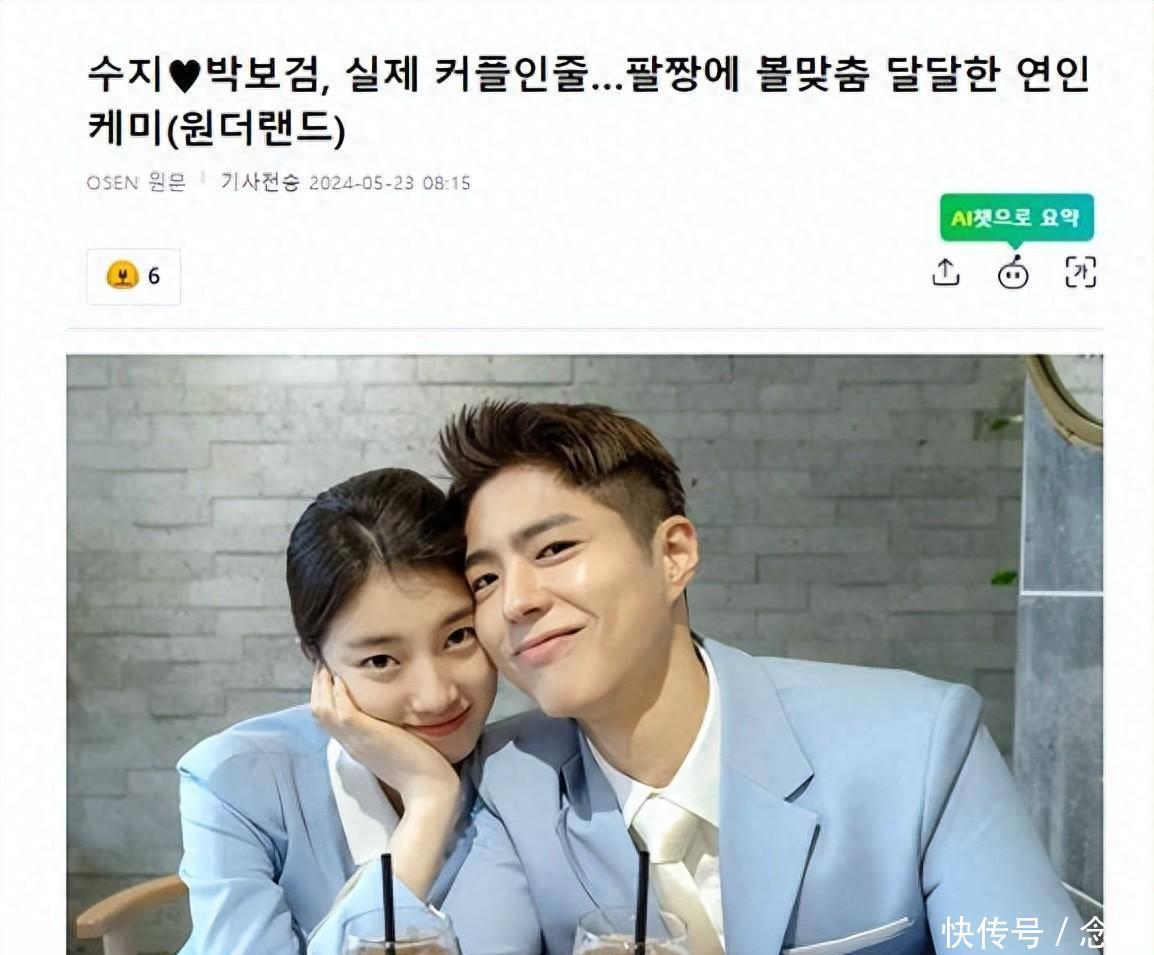 对此,韩国网友们也纷纷留言表示,“哦,他太漂亮了,看到秀智和朴宝剑就让我产生多巴胺”,“我不敢相信我能亲眼看到这两个人的情侣照,两人太般配了”,“哎哟,太甜蜜了,让人心碎的甜蜜秀智和朴宝剑”,“哇,疯了,面部组合是最好的,很遗憾只是电影,请制作32集的韩剧!”等等,得到了韩国网友们热烈的响应。
