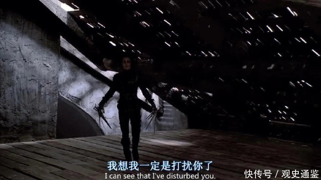爱德华的剪刀手造型不仅在故事中引起了小镇居民的好奇和惊讶,也通过电影画面直观地传达了他的孤独和隔阂。他的异样外貌成为他与常规社会之间的一道隔阂,使他无法像其他人一样进行日常的活动,例如穿衣、吃饭等。这种身体的异样性强调了他与主流社会的脱离感,营造出一种深刻的情感张力。
