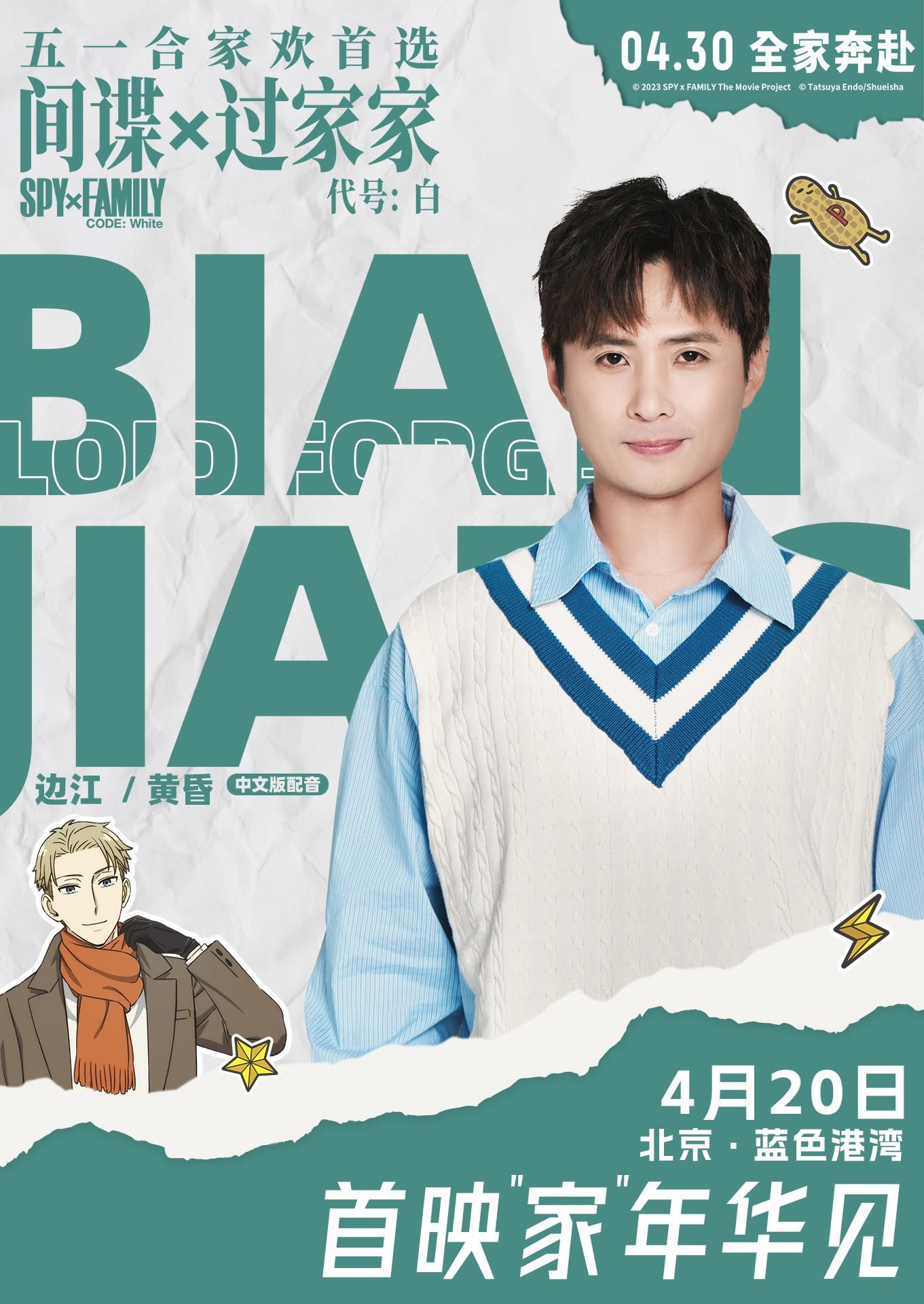 电影今日官宣黄昏、约尔、阿尼亚中文配音演员,边江、季冠霖、山新倾情献声,这顶配阵容直接把期待值拉满了!边江配音的父亲劳埃德强大镇定,智商超群,还拥有超强的易容伪装能力;季冠霖为母亲约尔献声,她身手敏捷,在家人面前温柔文静,面对敌人却从不留情。山新为可爱的阿尼亚配音,为对付邪恶势力,阿尼亚巧妙运用读心术和坏蛋们周旋;劳埃德和约尔大显身手,义无反顾地踏上拯救女儿、消灭反派的任务之旅。忠心耿耿的小狗邦德也参与其中,为守护家庭尽己所能。“家人要在一起!”福杰一家都在用自己的方式守护着家人的安危,齐心协力破解危机、克服困难。三位声优还将出席首映“家”年华活动,超多惊喜等你来解锁。