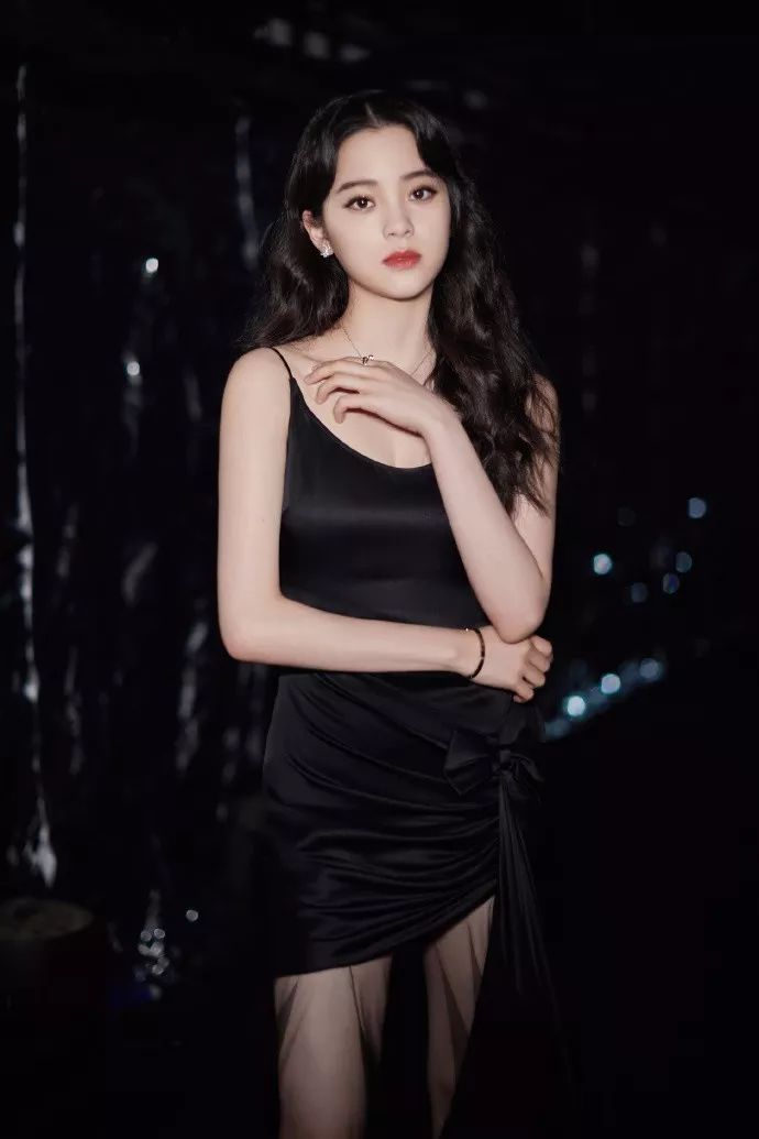 杨幂的三七分卷发搭配黑发红唇也可以参考,复古又不失调皮。