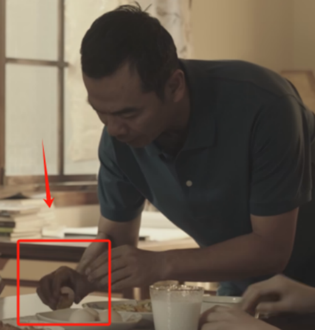 看得出来,一大早上一家人都比较慌乱,坐在一旁的女儿,本来自己要扒鸡蛋,一看“爸爸”磕了个生鸡蛋,她偷偷把手里的鸡蛋藏到了盘子后面。