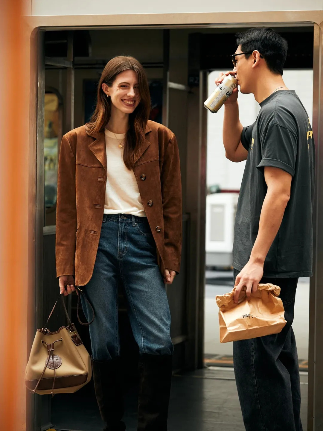 穿梭于都市之中,麂皮猎装夹克也可以为柔美的单品注入野生美感和力量感,用混搭的风格,打造复古又前卫的时髦风格。