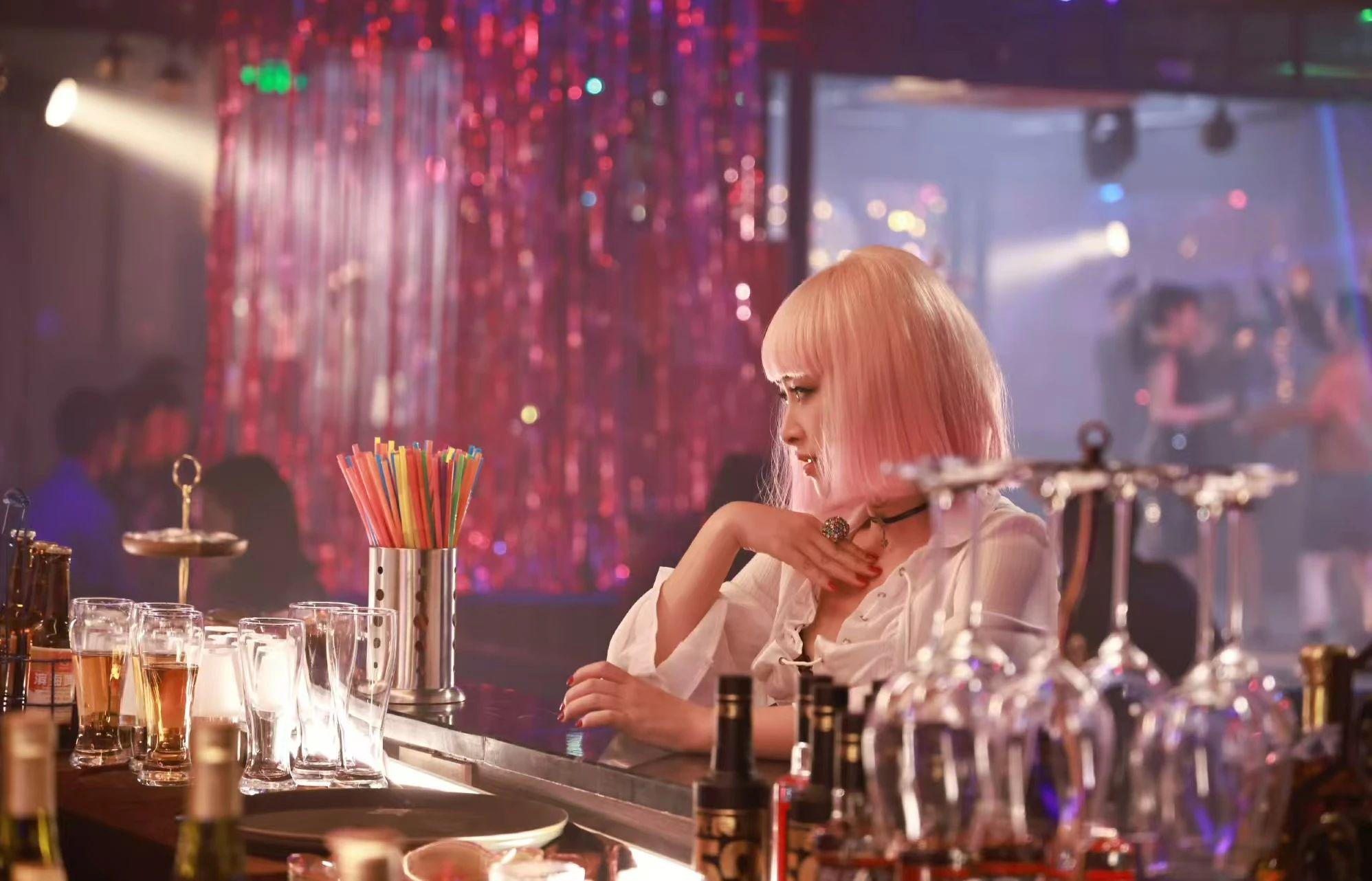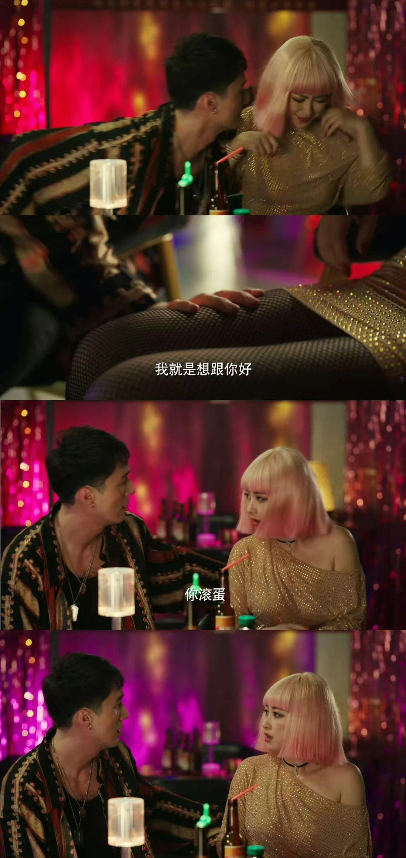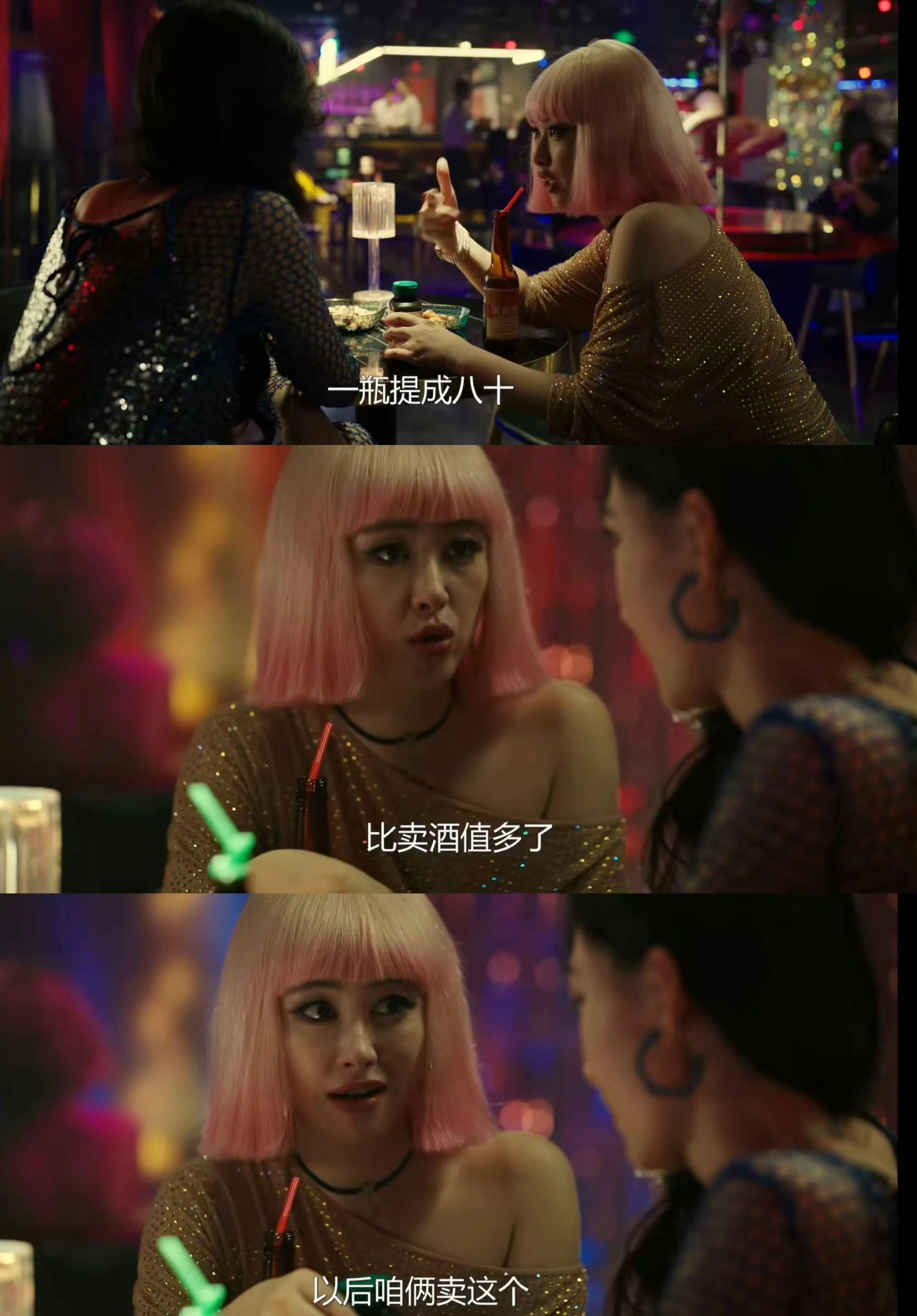 粉色的假发、浓浓的眼影、镂空的黑丝,再加上齐臀的短裙,黄萧的这个造型,剧组如果没有实际观察体验生活,是很难设计得如此准确的。