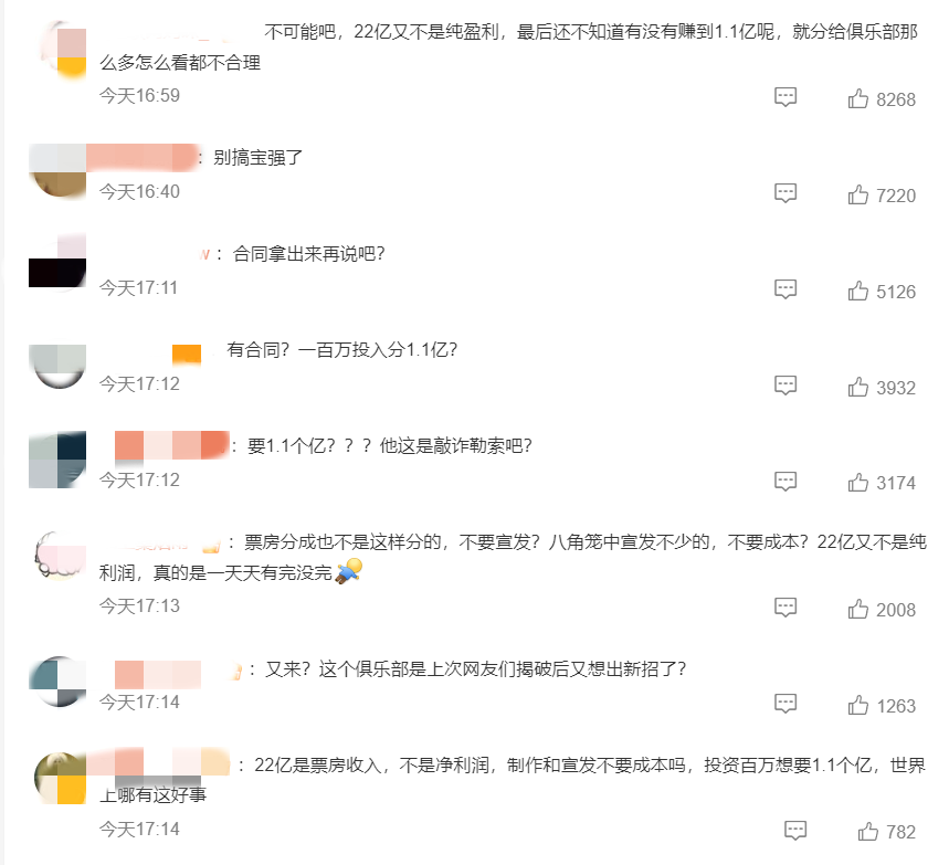 有网友说恩波俱乐部在“敲诈勒索”,直言票房22亿,不是收益22亿,要抛去各种成本和分成,才能算出利润。