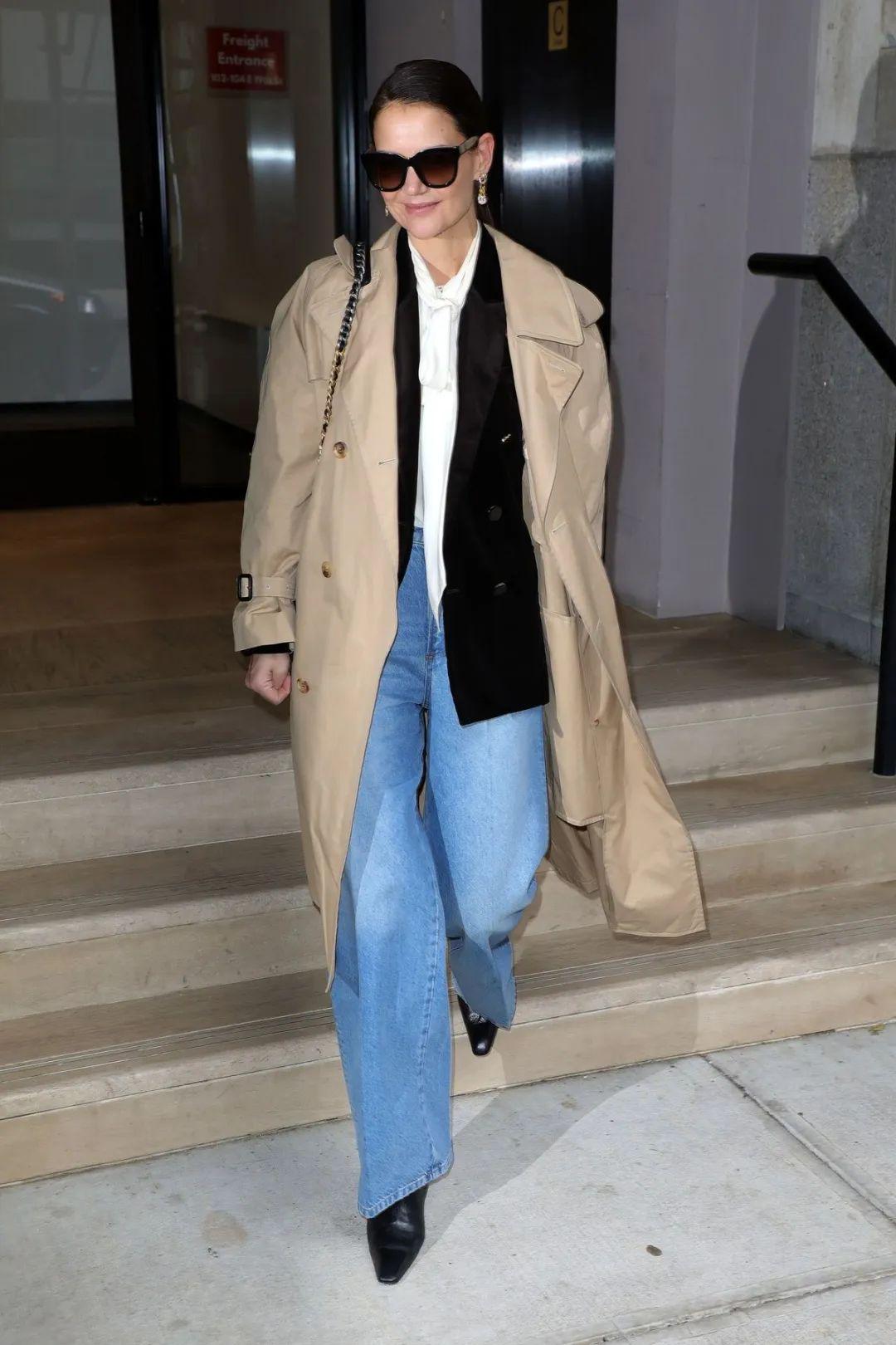 至于牛仔裤的选择,时下时髦女士更喜欢直筒牛仔裤,选择略微宽松的款式,搭配一双短靴,双腿笔挺修长,飒爽潇洒。