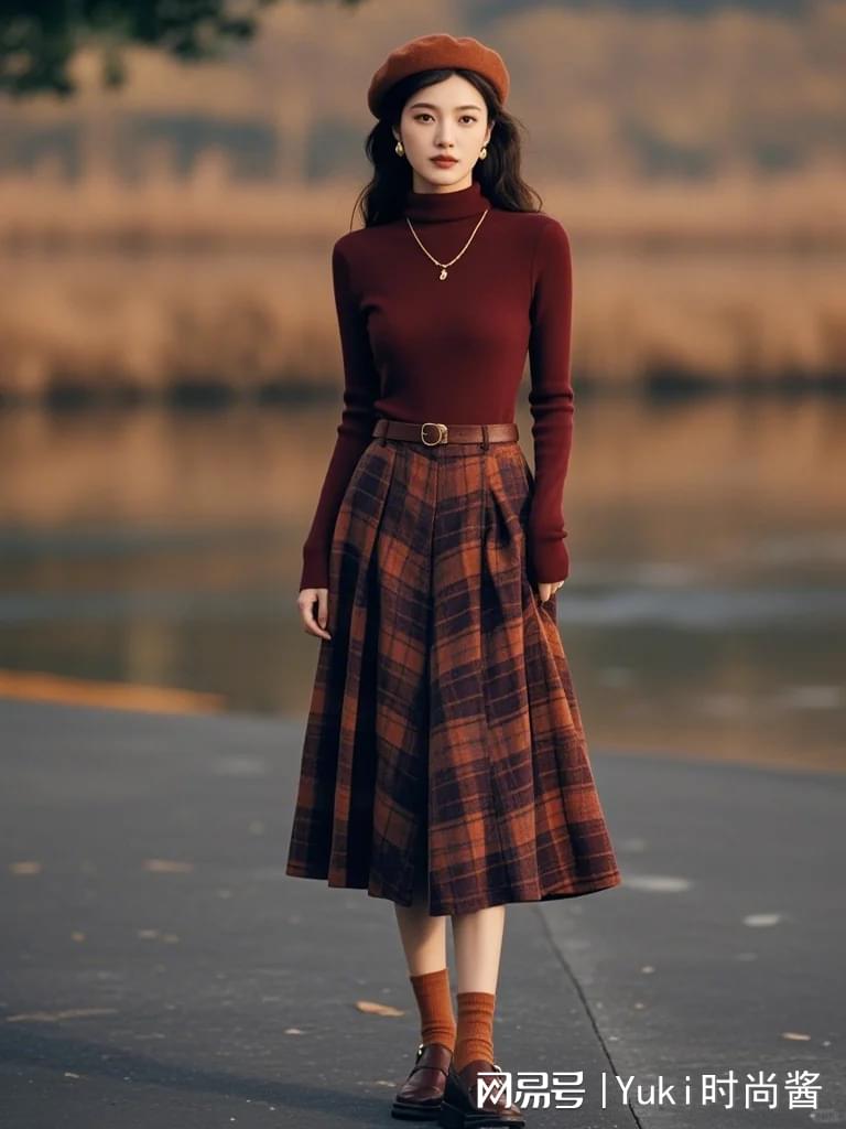 高领毛衣:高领毛衣是秋冬季节的必备单品,它不仅能有效抵御寒风侵袭,还能修饰颈部线条,提升整体造型的精致度。选择暗红色或棕色系的高领毛衣,既能作为打底,单独外穿也同样出彩,给人以清新脱俗之感。