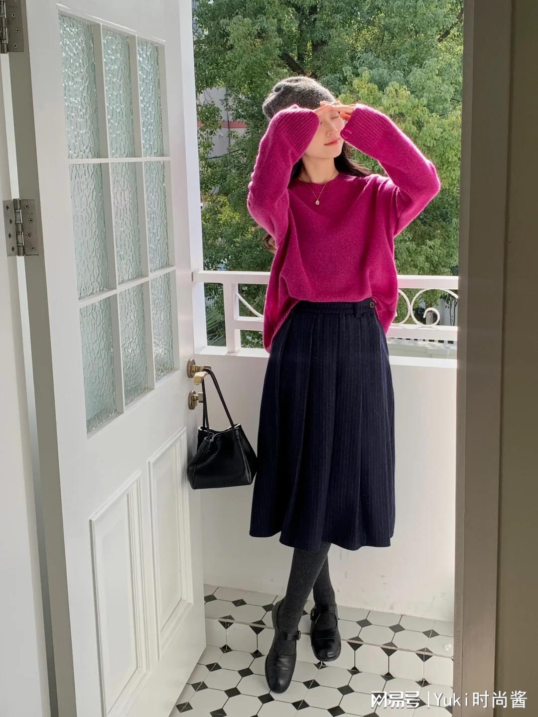 亮色点缀:如一条高腰过膝的红色半身裙,它如同秋日里的一抹暖阳,不仅提亮整体造型,还能有效拉长下半身比例,展现优雅身姿。搭配简约的白色衬衫或黑色高领打底衫,红与黑、白与红的经典碰撞,既醒目又不失和谐,展现出成熟女性的自信与魅力。