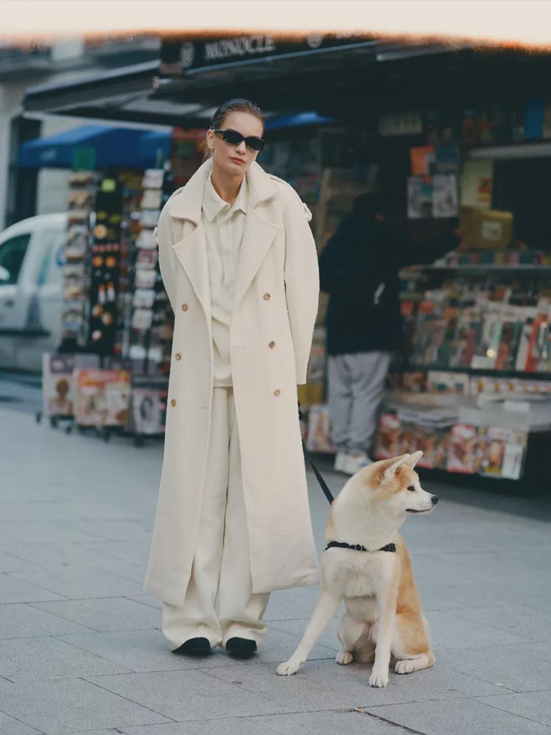 「外套+外套」的穿法非常吸睛,