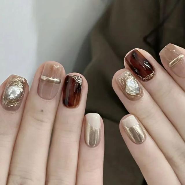 美拉德的风终究是吹到了美甲界,以棕调和咖色为主的琥珀美甲一直是秋冬的npc选手。