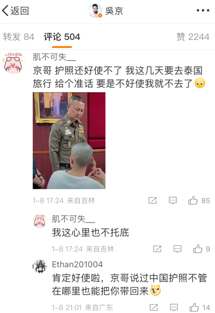还有人给谢楠的老公吴京,取了一个新外号——护照哥: