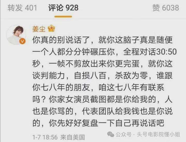 接着,姜尘留言回应,表示“全程对话30:50秒,一帧不剪放出来你更完蛋”,但很快被对方删掉,对方留言表示“我会向张颂文老师道歉的,说的八卦而已”。