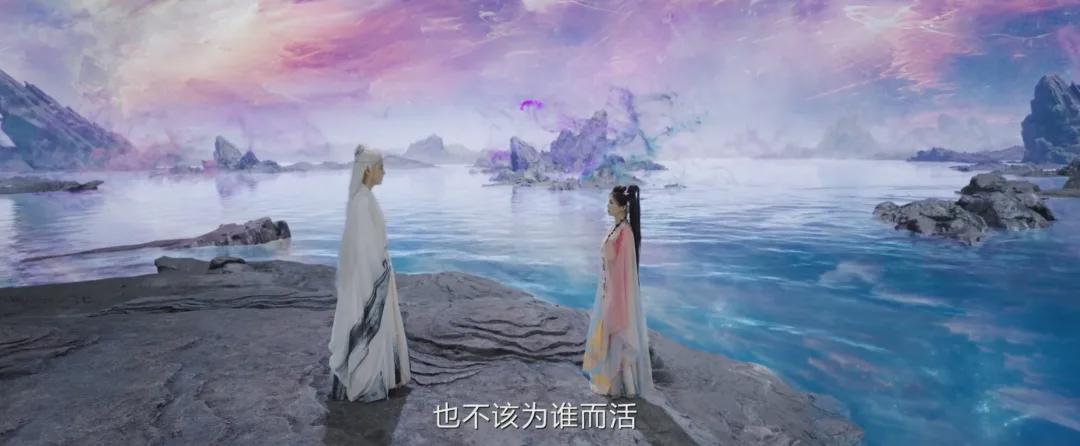 至于整部剧的美术,有些场景做得是很用心,比如不羁楼里的雕像,看上去是四大天王,特别有种东方魔幻感,但有些又审美下降得很明显,比如月隐海,荧光色的花树海洋没什么逻辑的无序堆叠,扑面而来一种混乱感。