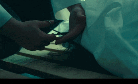 男主吉姆在去认女儿遗体时,老泪纵横,剪下女儿一缕头发后,轻轻将白布重新将女儿的脚盖起来,疼爱地抚摸。