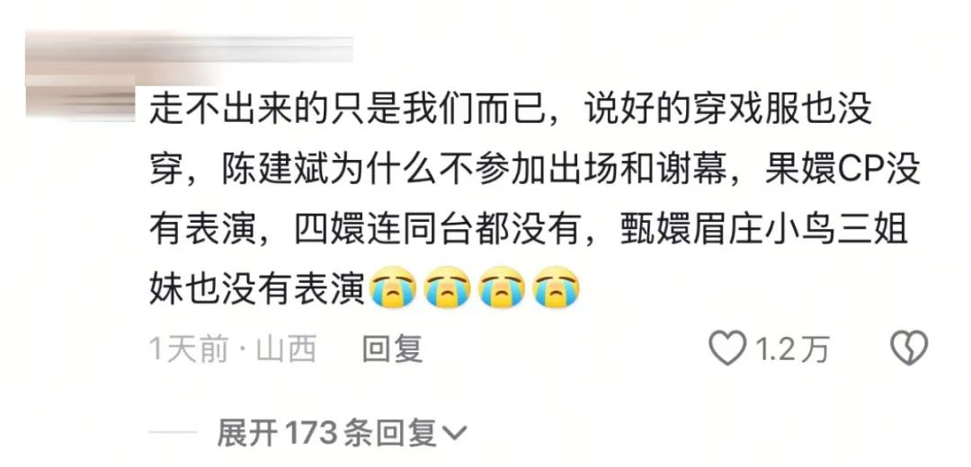 要知道,甄学家们可是连热依扎没参加晚会、陈建斌没在晚会上和大家同台的「遗憾」,都能玩成梗的乐子人们。