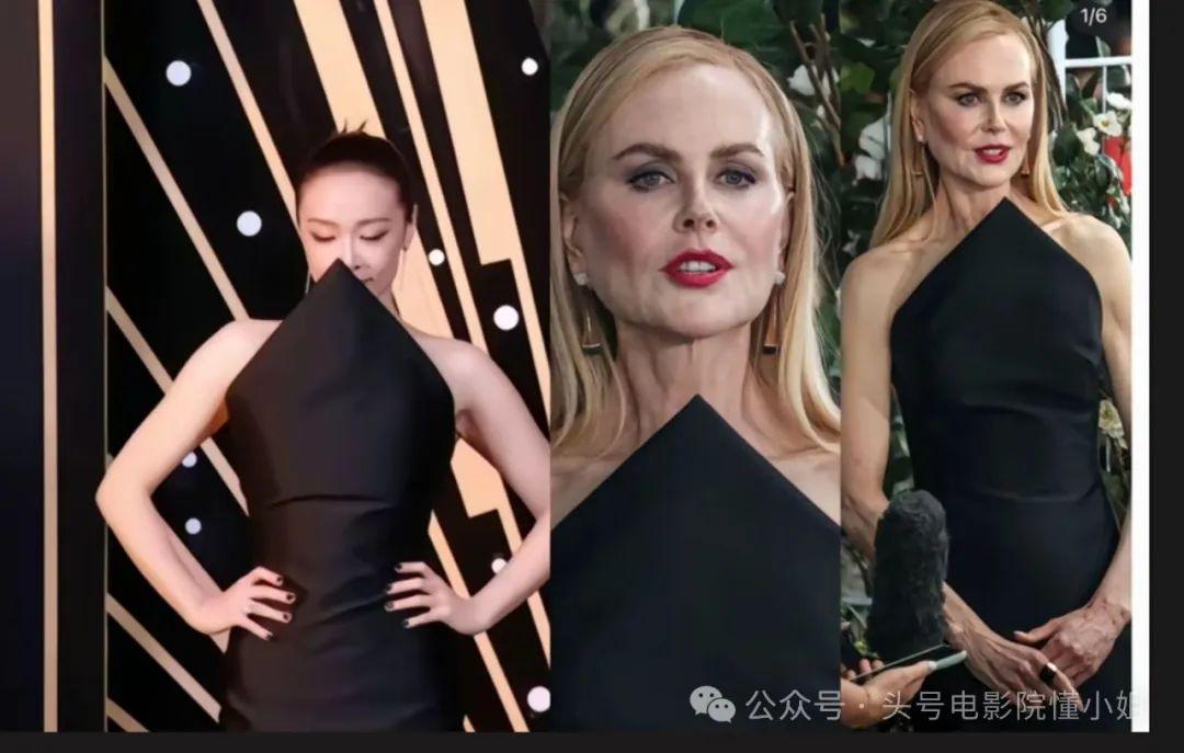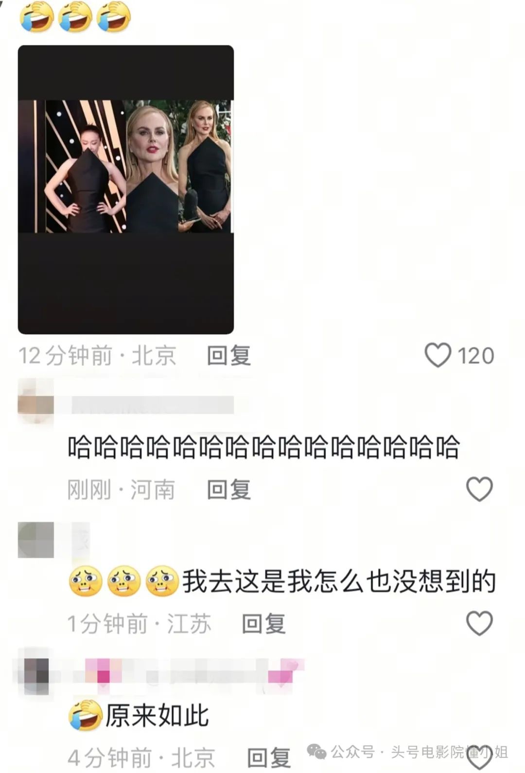 更让人忍不住爆笑的是,有人晒出了似乎同一款式的礼服裙,穿在好莱坞明星妮可·基德曼身上的效果。