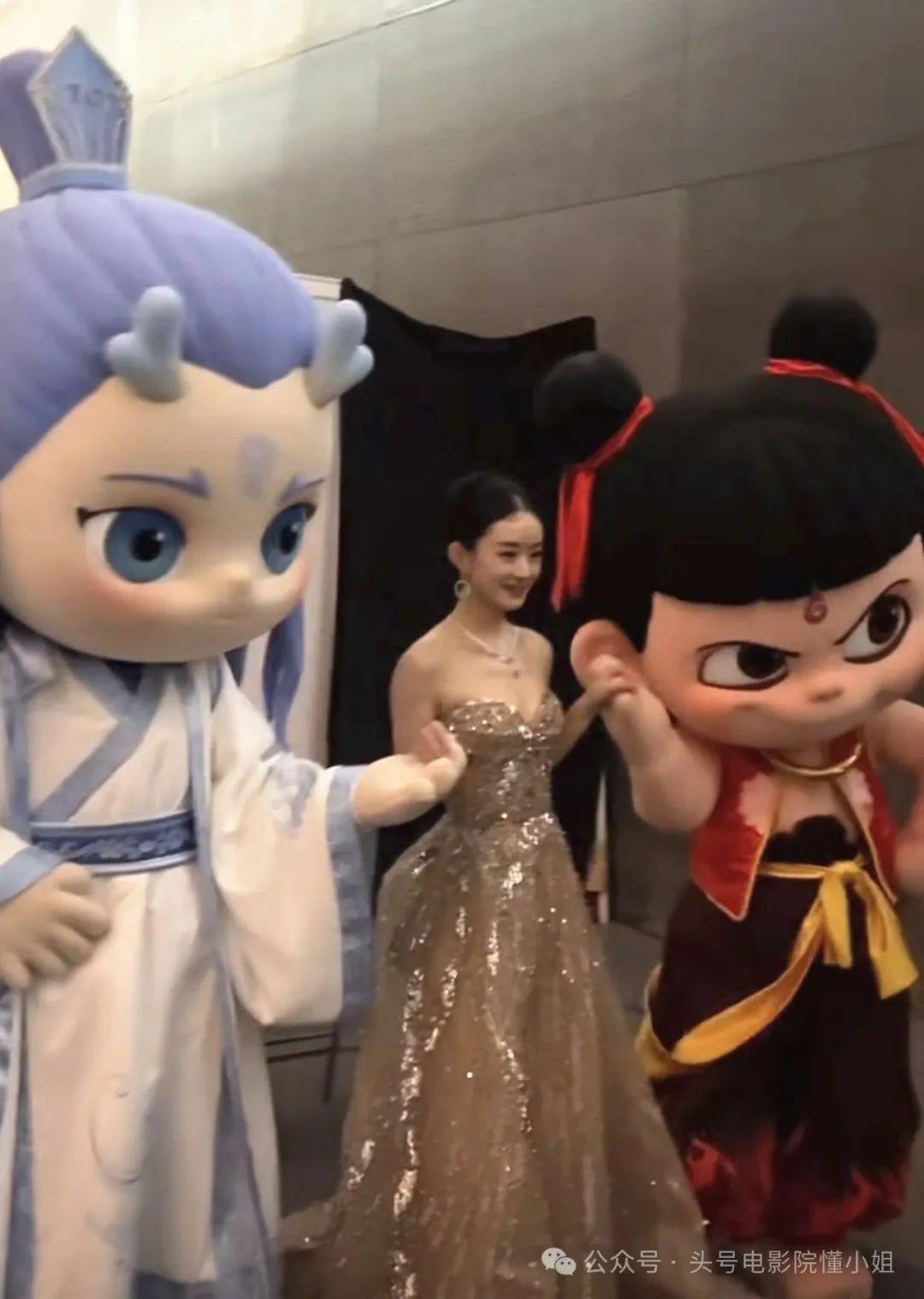 赵丽颖后台和哪吒人偶的合影,也太突破二次元的可爱了。