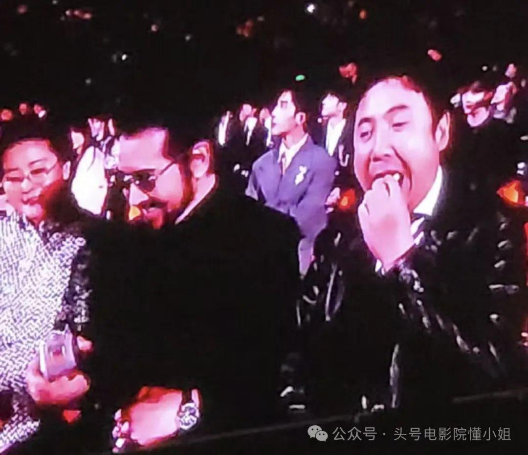 本来沈腾还用靠垫遮挡住,小心翼翼地吃,结果后来发现旁边的摄像机镜头早就捕捉到他偷吃的画面了,他自己也乐了。