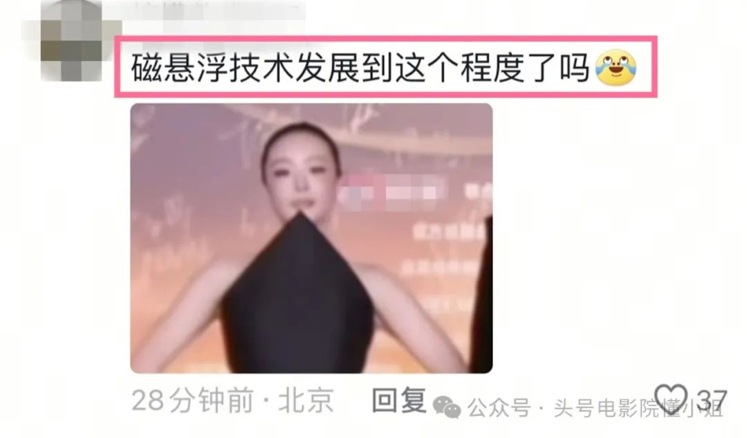 当晚,高叶身穿的黑色礼服裙,有一个向上且正对她的尖尖,而因为角度问题,导致这个尖尖在高叶出场拍照的时候,频频挡住她的脸,仿佛戳到了她的嘴里,产生了极大的喜剧效果。