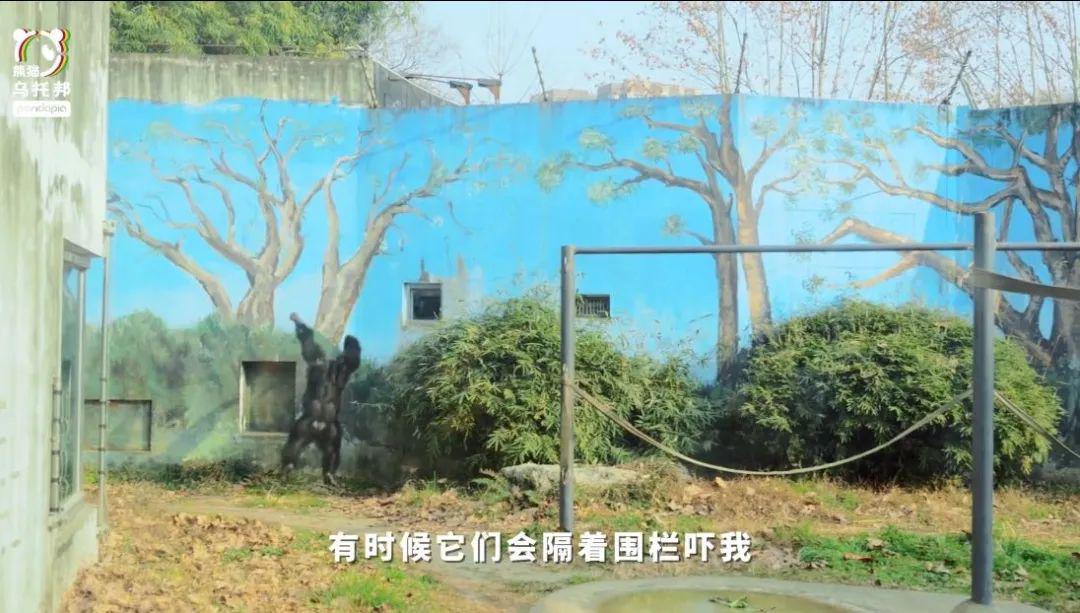 园里的一对幼年黑猩猩,就经常隔着围栏故意吓他,主打的就是一个“排外”。