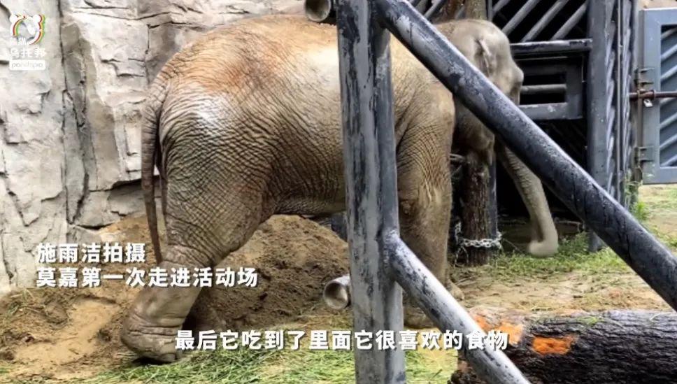同一个动物园的另一只大象宝龙,曾经历过一次调笼,换到了一个新的运动场生活。