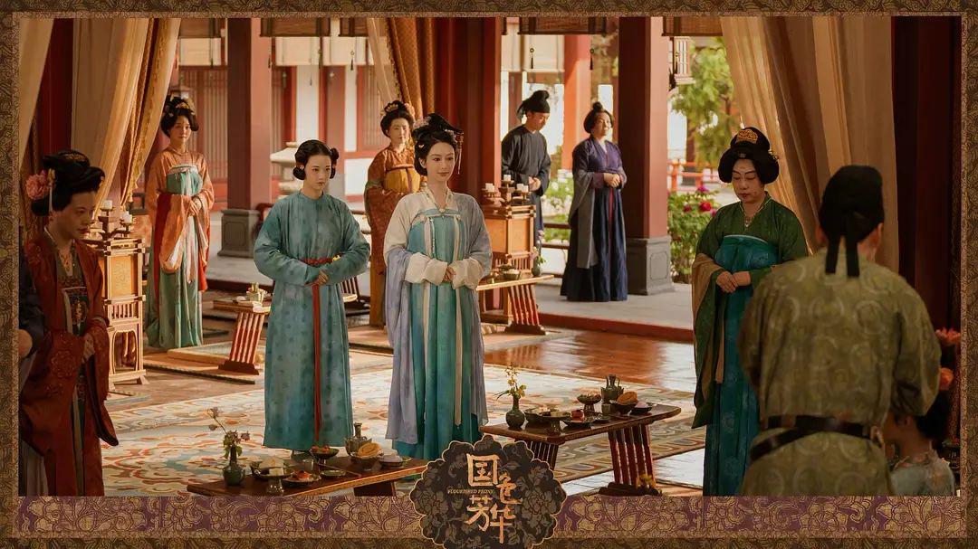 《国色芳华》融入了多种非遗文化元素,全景式呈现盛唐长安民生风貌,包括花卉、园林、园林建筑、生活习俗等,《国色芳华》的海报就是以绢本为底,层次分明,展卷绘就了众位人物的华服盛妆,本身就像是一幅画卷,《国色芳华》不仅以一种更通俗的方式将传统文化融入到电视剧中,同时展现盛唐的风华气韵,勾勒出一幅盛世之下百姓勇敢奋斗、自强不息的生动图景。