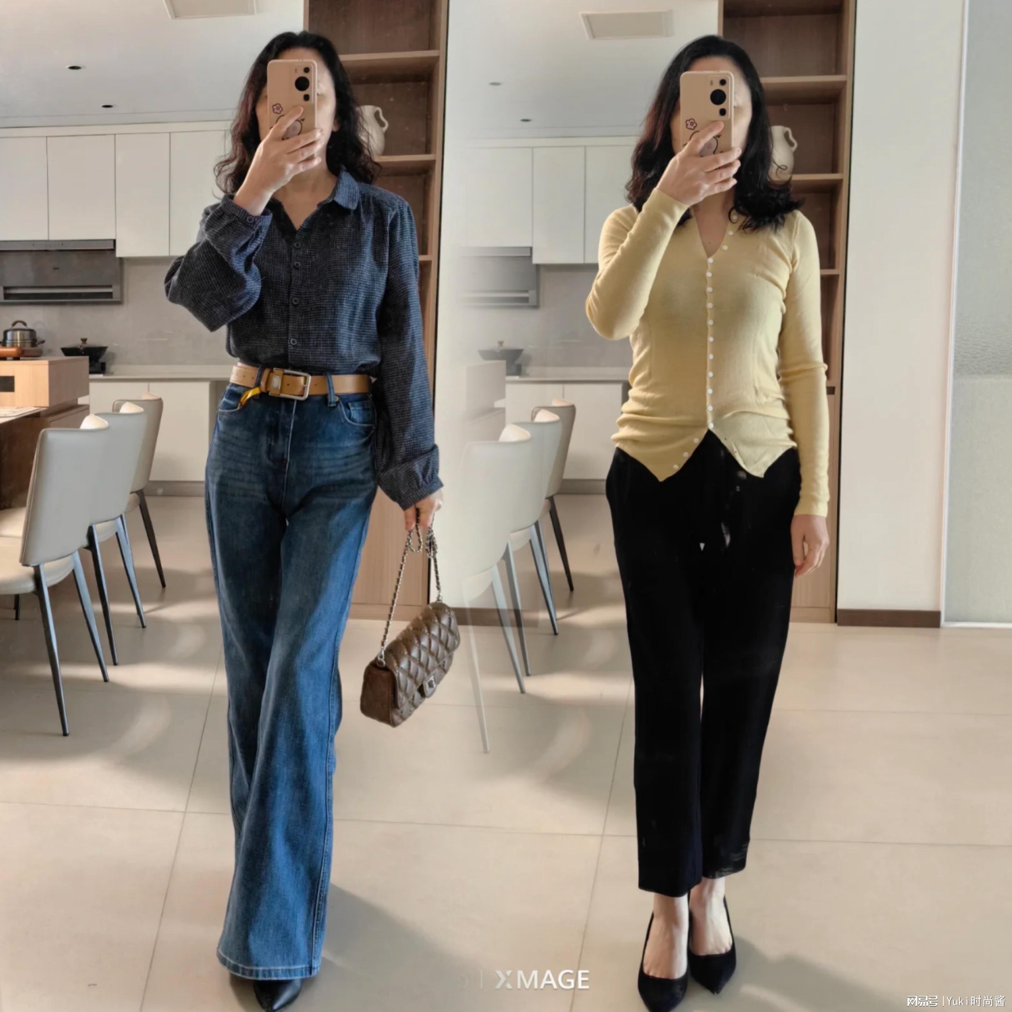 H型身材:微喇裤+高腰设计可制造曲线错觉,搭配短款上衣效果更佳。
