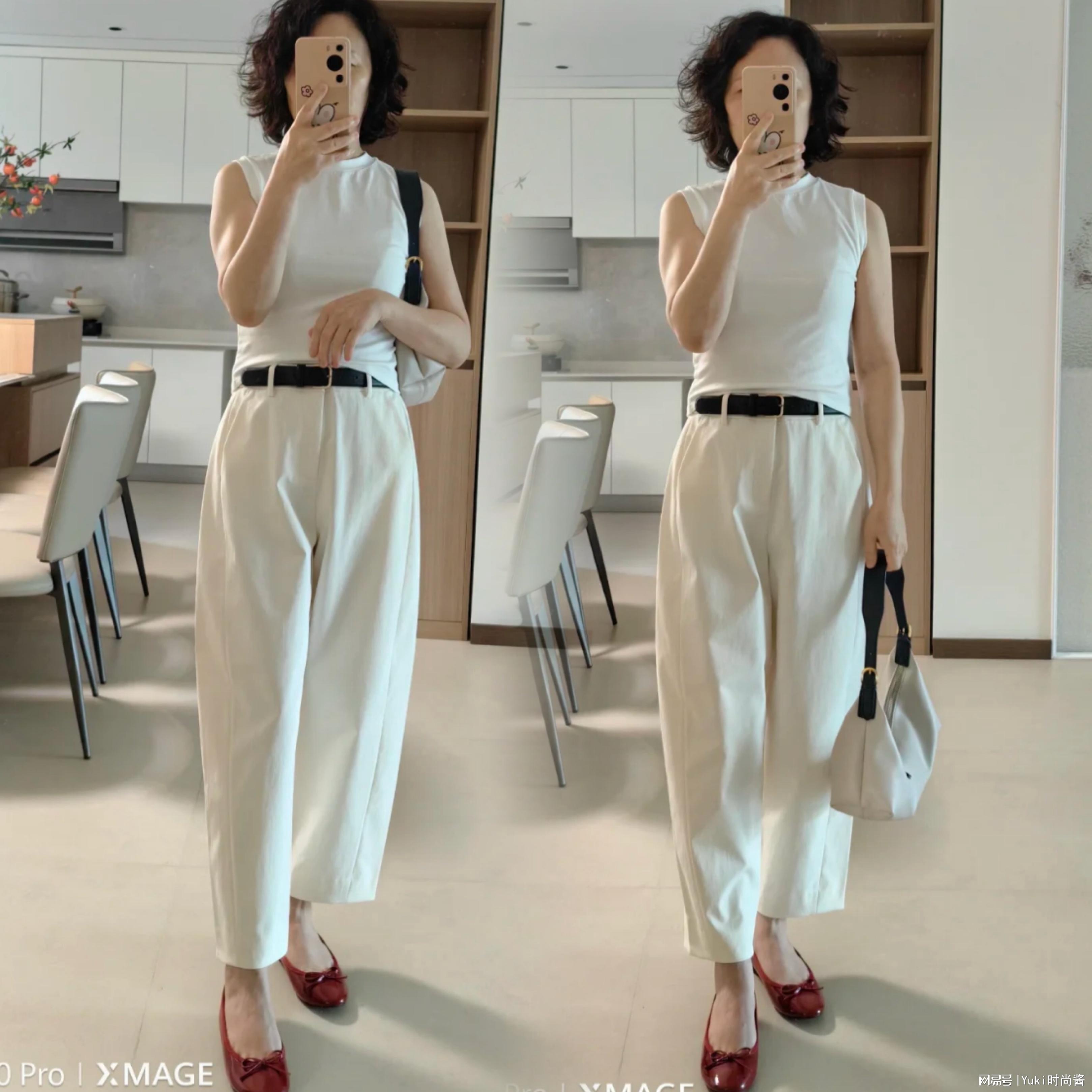 奶奶裤最受欢迎的还是它的穿着舒适度,茧型剪裁在视觉上可以很好的修饰腿型,对于下半身偏胖的梨形身材非常友好,选择纯色的奶奶裤,比如米白色,浅灰色等等,搭配简约的浅色上衣,就可以轻松打造优雅的夏日造型。