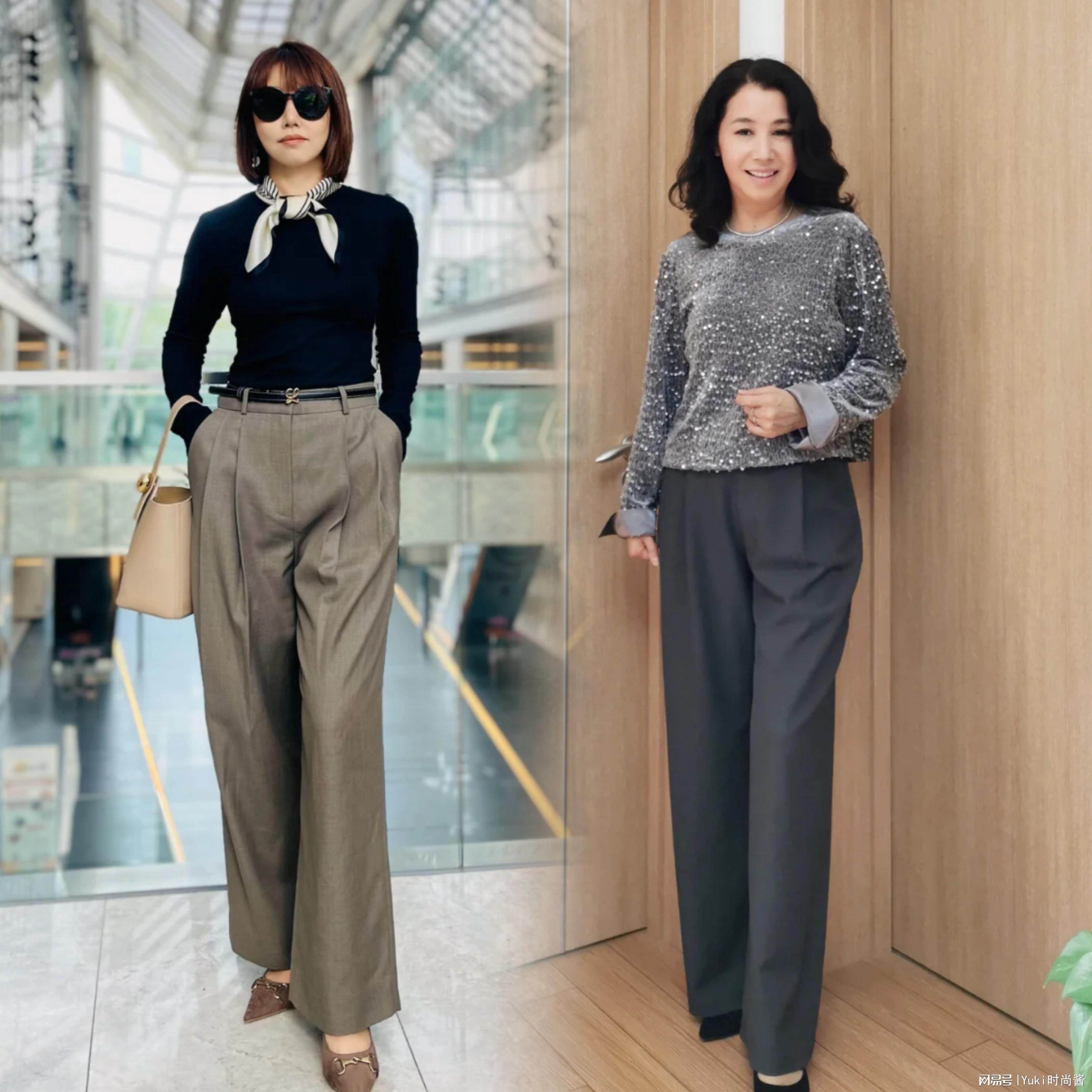 阔腿裤:遵循「上窄下宽」原则,搭配修身针织衫时裤管宽度建议不超过肩宽的1.5倍。