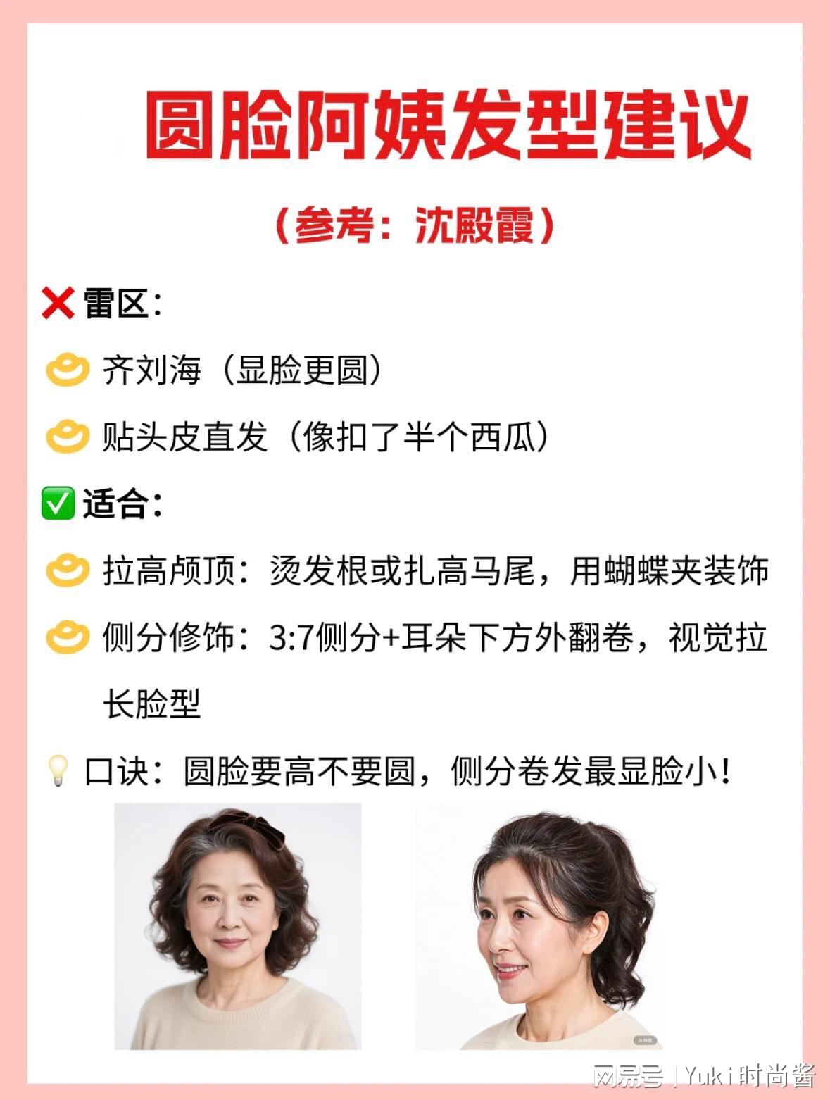 圆脸型:烫发根或扎高马尾,用蝴蝶夹装饰,或者3:7侧分+耳朵下方外翻卷,视觉拉长脸型。