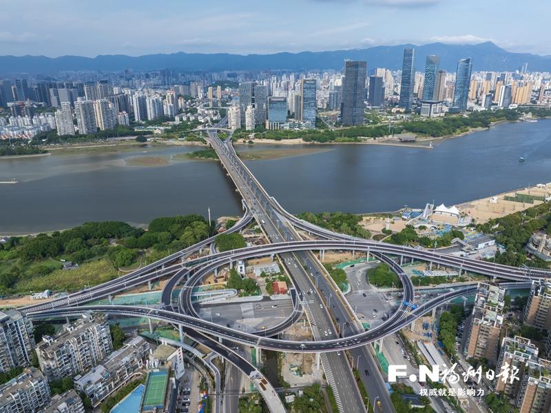 作为城区缓堵“利器”,金山大桥西互通立交与已完工的尤溪洲南立交提升改造工程、工业路(杨桥路—上浦路)提升改造工程共同组成一条快速通行的大通道,实现尤溪洲大桥、闽江大道与金山大桥之间的快速交通转换。