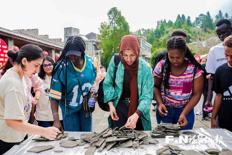 留学生在鼓岭体验摆塔习俗。(鼓岭管委会供图)