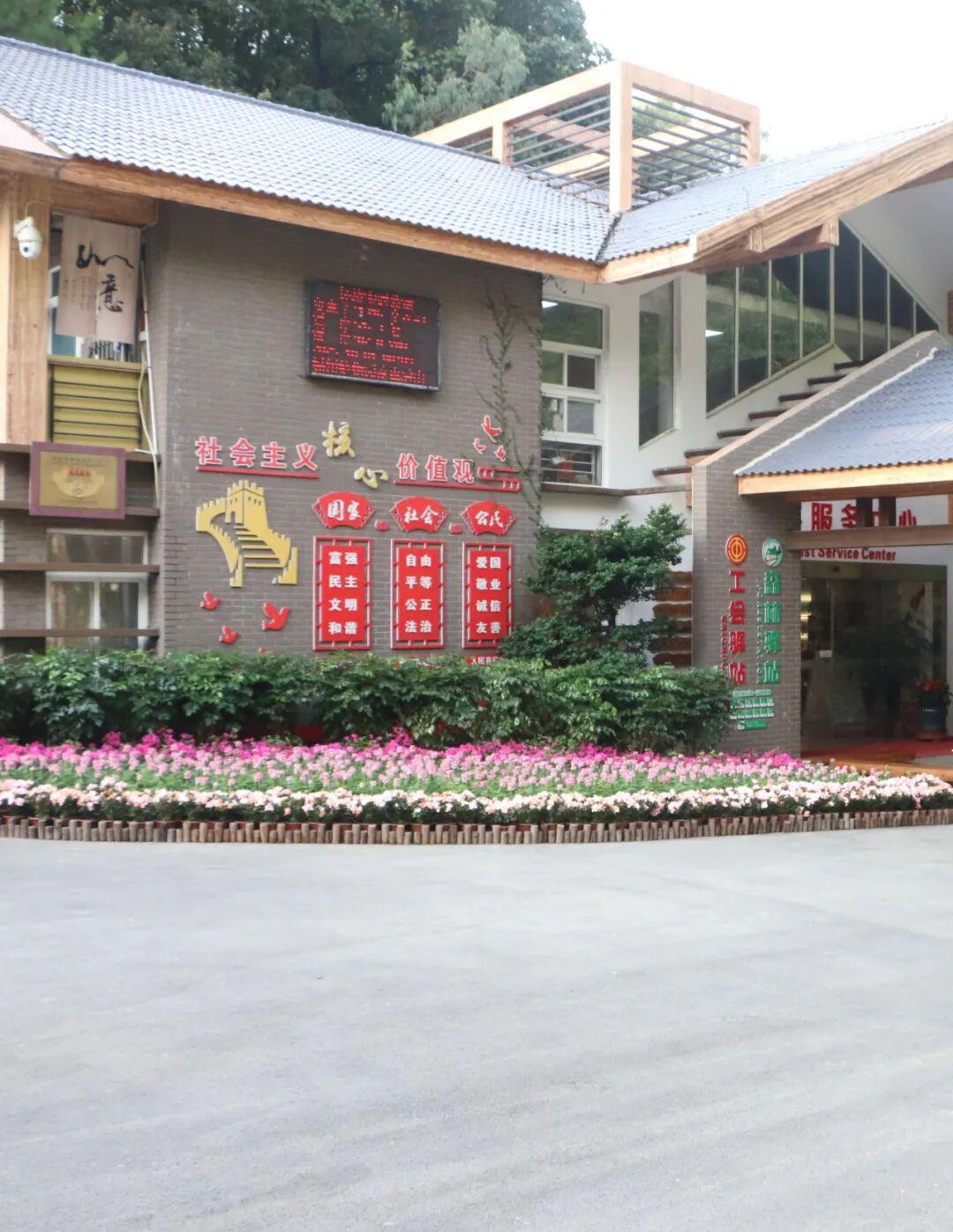 步出棕榈园,东门广场上三角梅热烈、醉蝶轻盈、比利时杜鹃娇艳、一品红似火,共谱色彩乐章;环湖路旁,长春花与鸡冠凤尾花蜿蜒铺展,织就斑斓花径;木平台处,“盛世华诞 举国同庆”的字样赫然在目,喜庆氛围流淌其间。夜幕轻抚,花影摇曳,与明月共绘家国同圆的最美画卷。