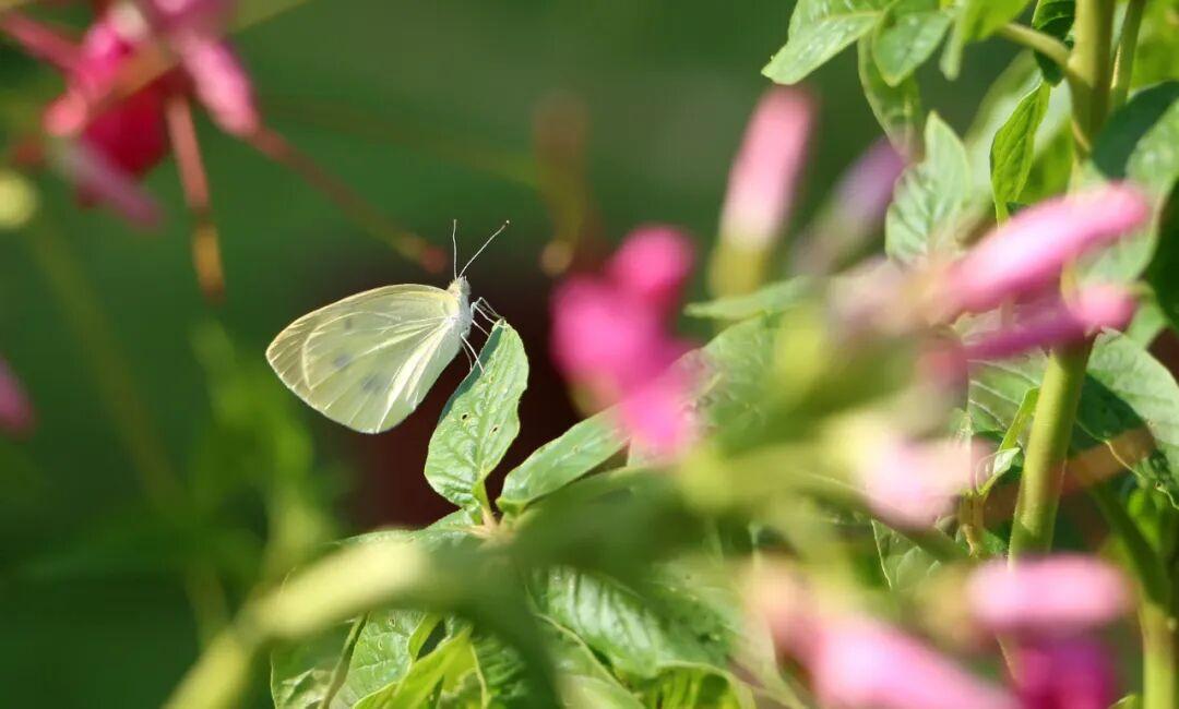 古榕之上,六只粉色、粉白色的“醉蝶”翩然起舞,与草帽上天蓝色的蝴蝶结遥相呼应。醉蝶花形似蝶翼,花色如梦似幻,随秋风轻舞,尽显生命斑斓之姿。“蝶”与“榕”一动一静、一柔一刚,共奏生态和谐之韵,诠释共生之美。