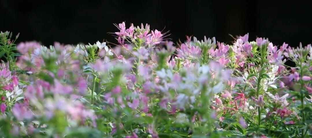 醉蝶花(学名:Tarenaya hassleriana),白花菜科醉蝶花属一年生草本,又名凤蝶草、醉蝴蝶、紫龙须等。掌状复叶,小叶5-7,椭圆状披针形或倒披针形;总状花序,苞片叶状;花瓣呈红、淡红或白色,瓣片倒卵状匙形;果长5-6.5厘米,密布网状纹;种子褐色,径约2毫米,近平滑;花果期3–10月。其花形别致,盛开时雄蕊细长伸出,宛若蝴蝶飞舞,故名“醉蝶”。原产热带美洲,我国多地均有栽植,是优良的观赏和蜜源植物。
