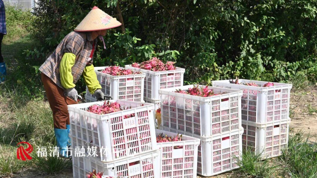 据了解,目前基地内的火龙果种植面积约650亩,涵盖十几个不同品种。其中,“金都一号”品种种植最多。该品种外观饱满圆润,口感甜蜜多汁,在市场上备受青睐。基地负责人林仕武告诉记者,采摘下的火龙果主要通过市场批发、电商平台、零售等途径,销往浙江、上海、北京、福州等地。