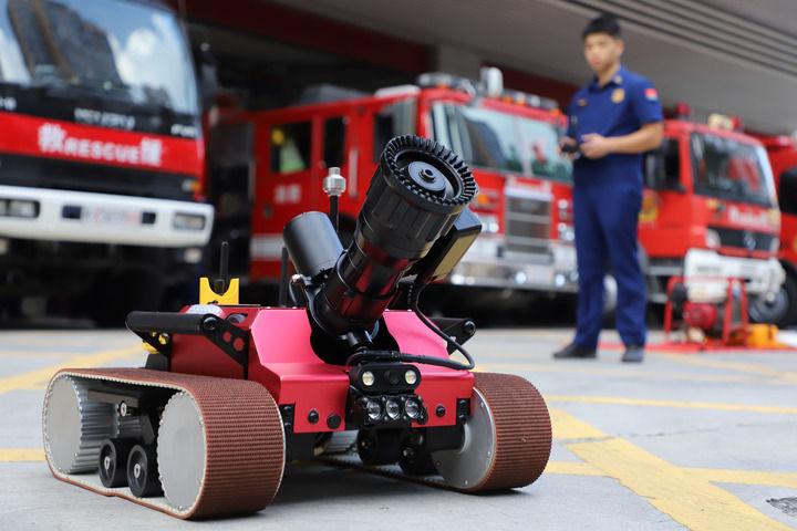 10月2日,在福建省厦门市思明区厦禾消防救援站,消防员在检查测试便携式小型灭火机器人的性能。新华社发(曾德猛 摄)