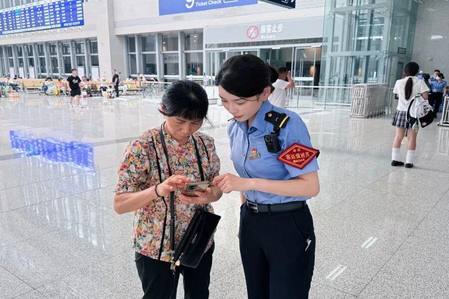 在服务保障方面,车站结合客流特点推出多项便民举措。一方面在进站环节优化流线设计,开启实名制验证口51个、安检查危仪24台,并增设“急客通道”,为临近发车的旅客提供快速进站服务;另一方面,候车区域增派由党团员、青年志愿者组成的服务队,在验证区、安检区、检票口、地道、电梯口等旅客容易聚集和涉及旅客乘降的重点部位进行区域强化组织和宣传提示。此外,针对夜间返程旅客,车站还与市政、交警、公交、地铁、出租车等部门紧密对接,做好信息互通,确保夜间到达旅客顺利接续换乘,实现“最后一公里”无障碍通行。
