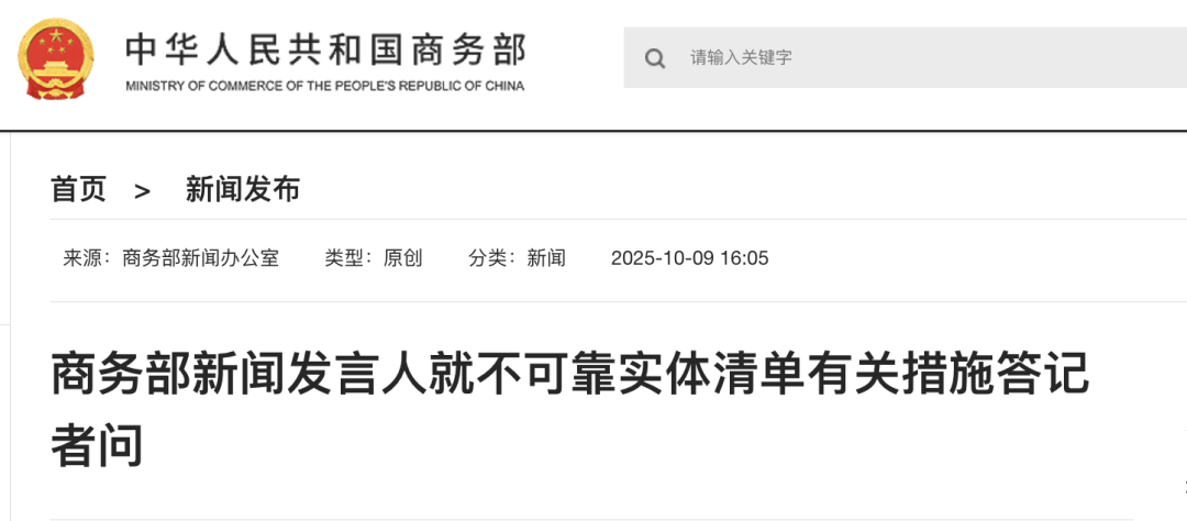 10月9日,商务部新闻发言人就不可靠实体清单有关措施答记者问。