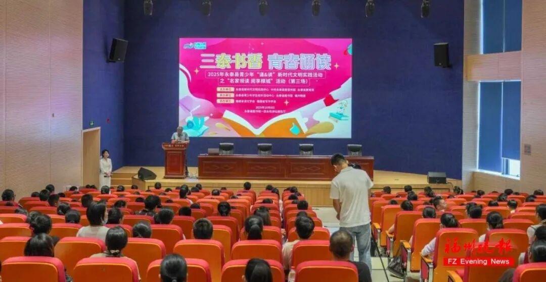 据悉,本次“三泰书香·青春诵读”系列活动,由永泰县新时代文明实践中心、中共永泰县委宣传部、永泰县教育局主办,永泰县青少年学生校外活动中心、永泰县图书馆、福州晚报等单位承办,福建省语文学会、福建省写作学会协办。活动旨在通过名家引领、创新形式,激发青少年阅读与写作的兴趣,培养文学素养,在全县营造“爱读书、读好书、善读书”的良好社会风尚。