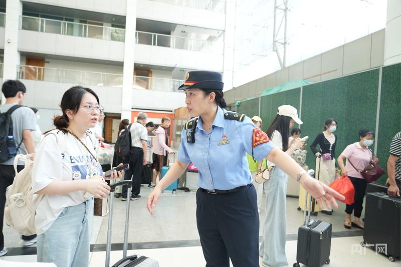 10月9日,铁路国庆中秋假期运输第11天,中国铁路南昌局集团有限公司福州火车站继续迎来旅客返程高峰。车站里人流如织,热闹非凡。其间有一位默默坚守岗位的客运值班员——赵静,她用自己的热情与耐心,为旅客们编织了一段段温馨的出行记忆。