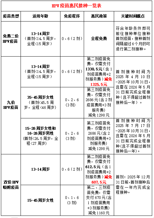 优惠政策涵盖以下三种HPV疫苗,接种者可任选其一:
