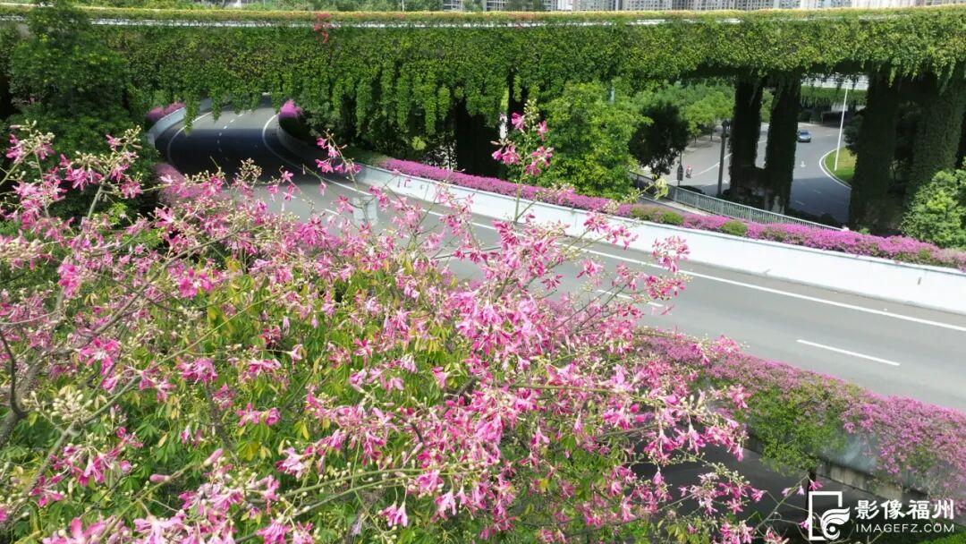 ▲福州街头的美丽异木棉满树缤纷 池远/摄