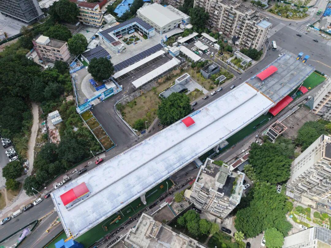 为减少墩柱占地面积,提升整体空间利用率,项目团队创新应用“大悬臂桥型钢混组合梁”结构——在确保施工质量的同时,最大程度减少施工对地铁正常运营及桥下道路通行的干扰,在有限空间中实现交通的高效分流。