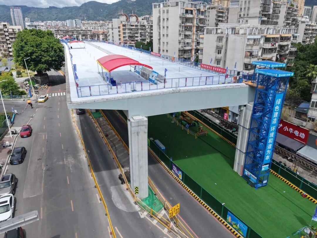 此外,在前横路快速化改造工程福马路至前屿路段施工现场,一段长达194米的主线桥钢梁凌空架设创下福建省同类桥梁装配施工新纪录。