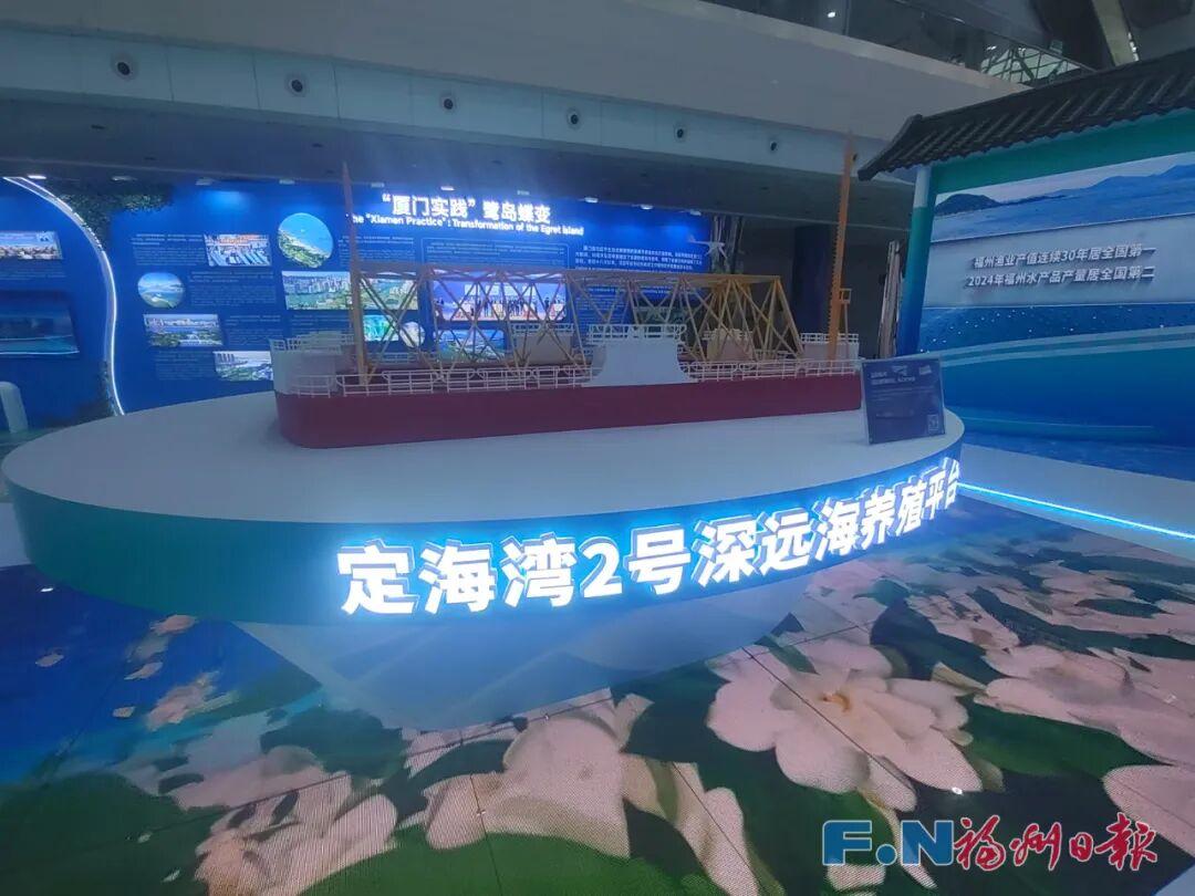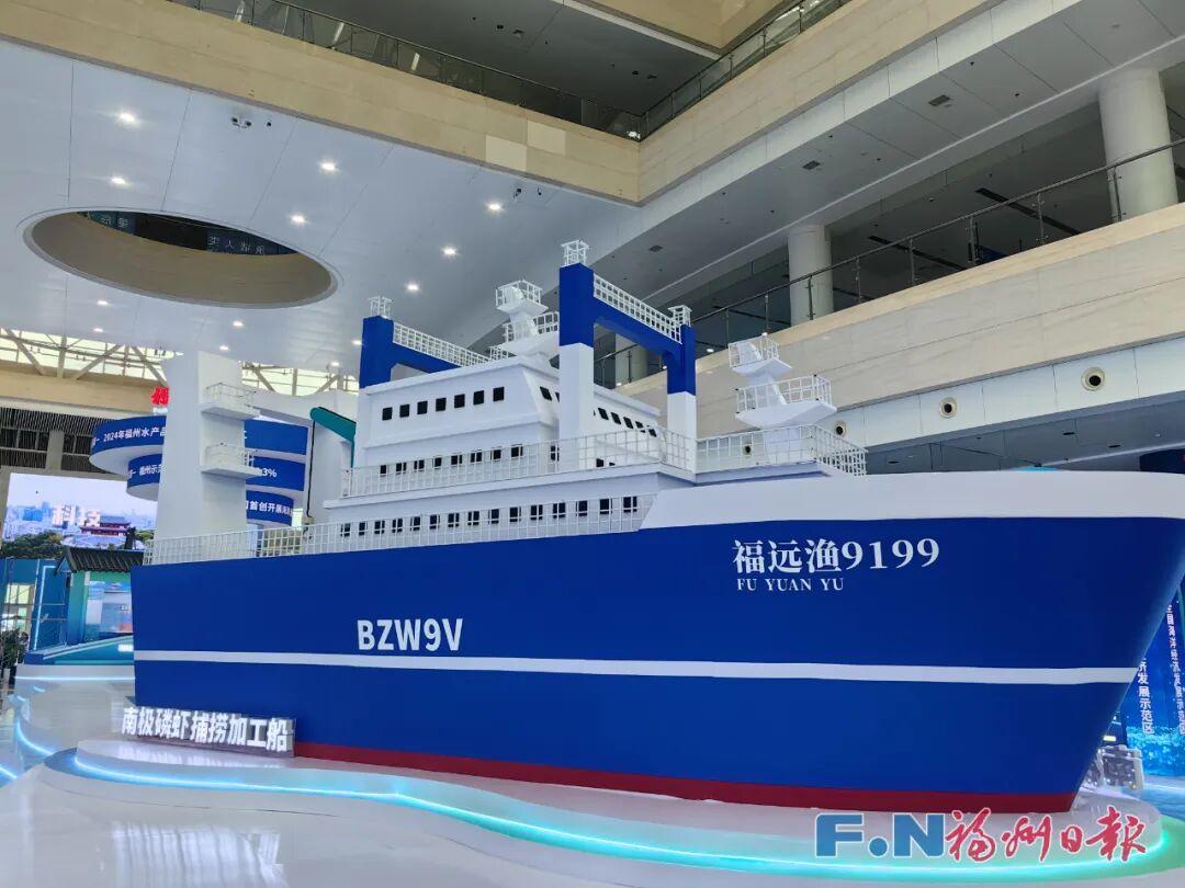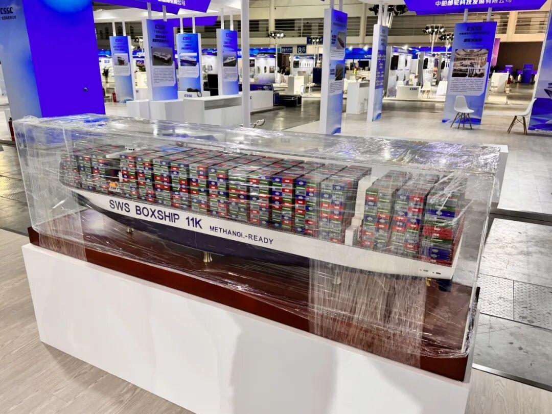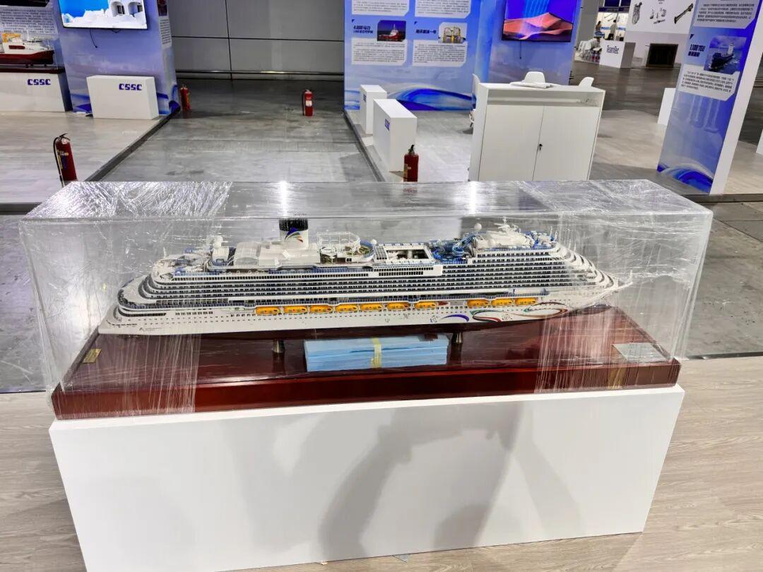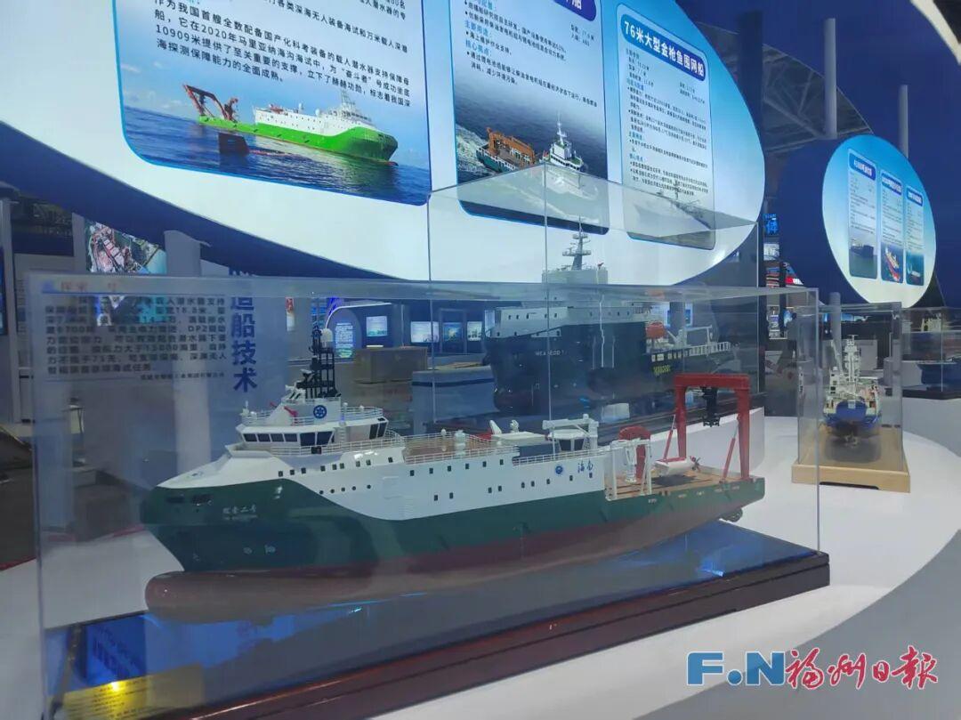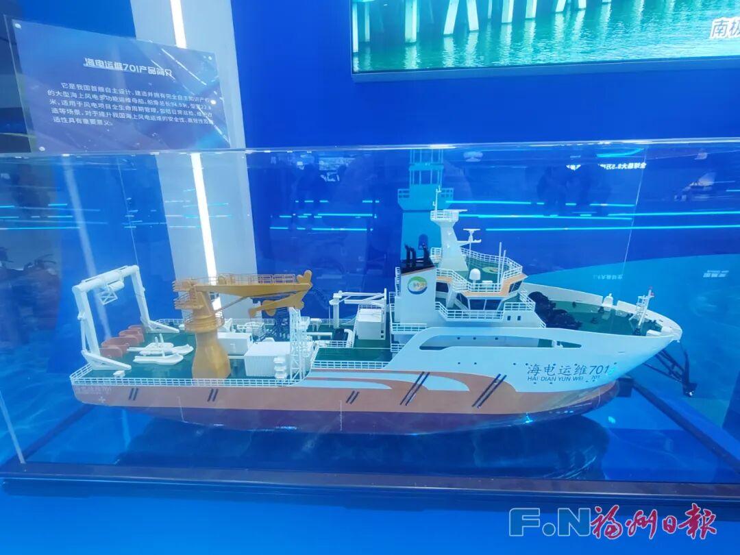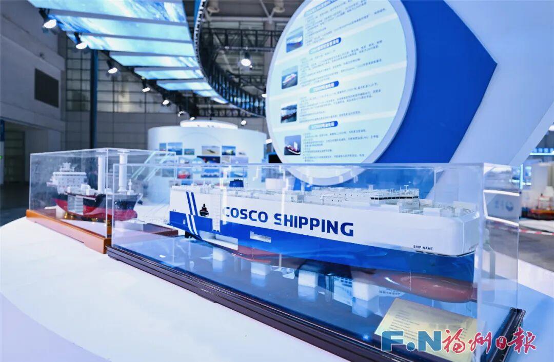 福建海洋装备展区展示的7500车LNG双燃料汽车滚装船模型