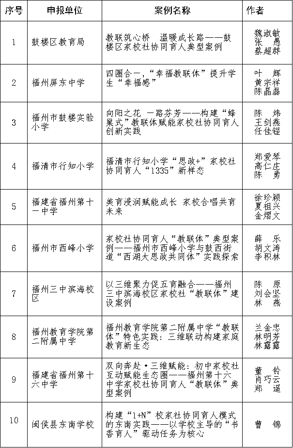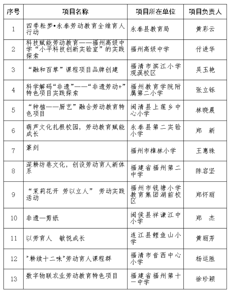 近日,福州市教育局发布关于公布2025年福州市“一校一案”落实 《中小学德育工作指南》 典型案例等五项特色项目的通知,多校上榜。具体名单如下: